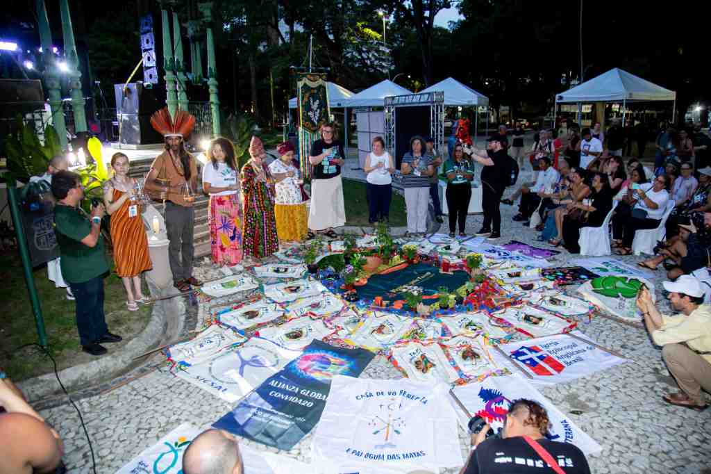Centenas de pessoas entre lideranças religiosas, ativistas, representantes dos povos originários, movimentos sociais, artistas e coletivos participaram da Vigília pela Terra, realizada na Praça Batista Campos, nesta quinta-feira, dia 13 de novembro, em Belém. O encontro promoveu o bloco ‘Vozes pela Terra’ com manifestações de lideranças de diferentes espiritualidades e religiões com falas e reflexões e intervenções artísticas em defesa do meio ambiente. A iniciativa Vigílias pela Terra viabiliza articulações e sensibilização a partir de diferentes grupos religiosos para fortalecer ações no enfrentamento à crise climática. O evento é uma mobilização inter-religiosa, promovida pelo Instituto de Estudos da Religião (ISER) em interlocução com vários parceiros que une espiritualidade, arte e cultura em prol da justiça climática.