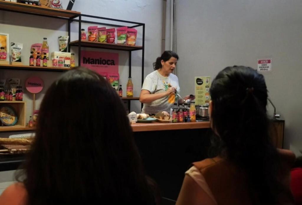 “A Manioca é uma indústria de impacto socioambiental que transforma ingredientes da biodiversidade amazônica em alimentos das nossas tradições. Fazemos tucupi, molho de pimenta, farinha e farofa, produtos deliciosos e profundamente ligados à origem amazônica. Nosso impacto começa no econômico, gerando renda para comunidades tradicionais, mas também é cultural e social, porque damos luz aos ingredientes da região e ajudamos o Brasil a conhecê-los. No fim, isso também é impacto ambiental: quando valorizamos nossa culinária e geramos desenvolvimento, fortalecemos quem vive no território e ajudamos a preservar a floresta”, explicou Joanna Martins, fundadora da Manioca.