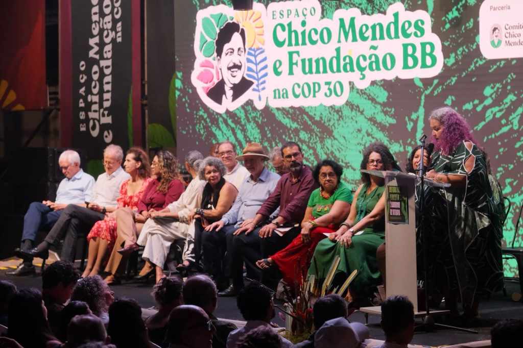 O “Espaço Chico Mendes e Fundação BB na COP30” foi uma realização do Comitê Chico Mendes, do Conselho Nacional das Populações Extrativistas (CNS) e da Fundação Banco do Brasil, com apoio do Memorial Chico Mendes, do Museu Paraense Emílio Goeldi e do Ministério do Meio Ambiente e Mudança do Clima (MMA). Mais informações estão disponíveis no site: https://espacochicomendes.org/.